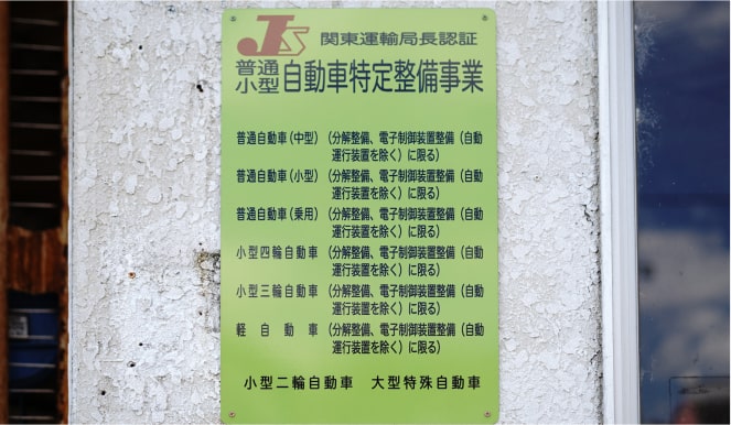 | 業務内容 | 自動車整備 / 車検 / 鈑金・塗装修理/車販売 |